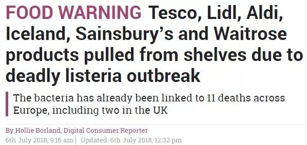 太阳报:警告!Tesco,Lidl,Aldi,Iceland,Sainsbury's和Waitrose大量召回产品,传受致命李斯特菌感染!