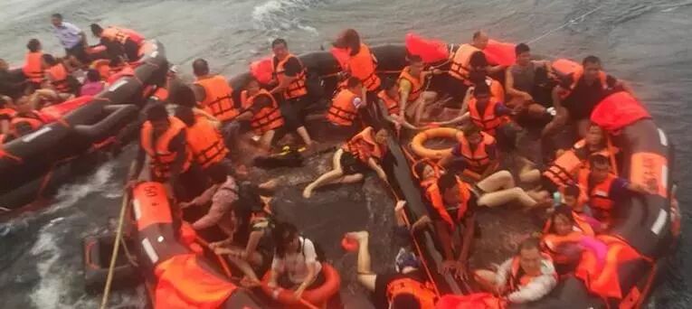 泰国普吉府尹第一时间指挥救援队,连同海军、水警、旅游警察等相关部门,搜救船上所有游客。