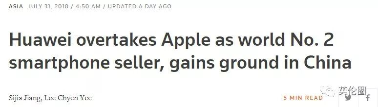 这条消息可以说是科技领域的大新闻了,外网多家媒体都对此做了详细报道,如英国《卫报》、路透社、著名金融科技类媒体Quartz、美国消费者新闻与商业频道CNBC,都在惊呼华为的“逆袭”▼