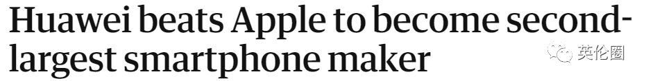 卫报:华为击败苹果,成为第二大智能手机制造商