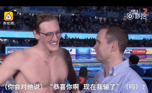 虽然他在400米自由泳比赛上, 输给了霍顿……