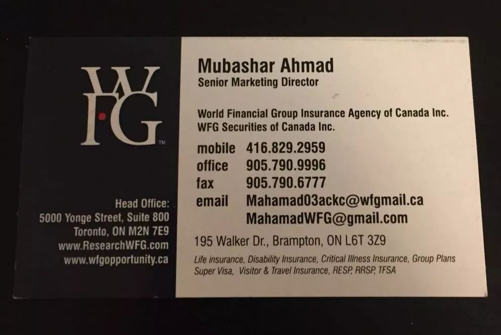 一听每个月有3000刀,我又没忍住问了一下工作条件,不需要金融背景,他们公司有很多IT或者工程专业出身的,包括他自己以前是做工程的,然后就跑来做这个了。而且也不需要坐办公室,上班时间自由。自己当自己的老板。公司叫WORLD FINANCIAL GROUP(WFG)。