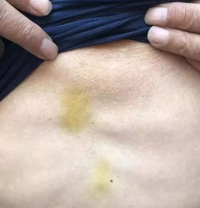 但曾先生的母亲告诉曾先生,警察在旅店内先是将曾先生父亲从沙发上拽下来,然后倒着将其拖出来,到旅店门口才换成两个人抬着。(三天后,曾父背部还有淤青)