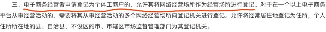 第三条中的一个细节值得单独拎出来强调,就是上述登记方法仅限已经申请登记为个体工商户的电商才可以使用!