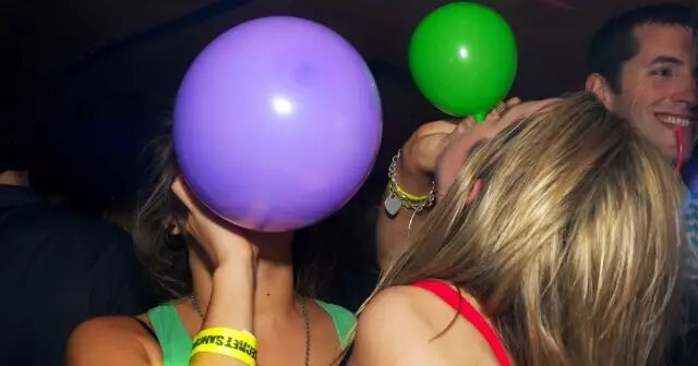 近来国外酒吧、夜场等娱乐场所特别流行的一种游戏"吹气球",就是把钢瓶装的笑气注入气球后吸入。