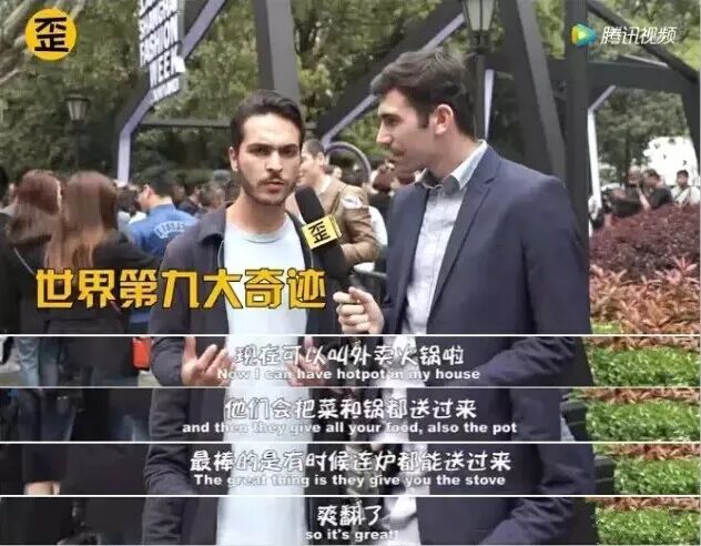 这个歪果小哥更是赞叹说,火锅外卖简直是个奇迹!是和埃及金字塔等齐名的“第九大奇迹”,哈哈哈哈,这比喻牛了!