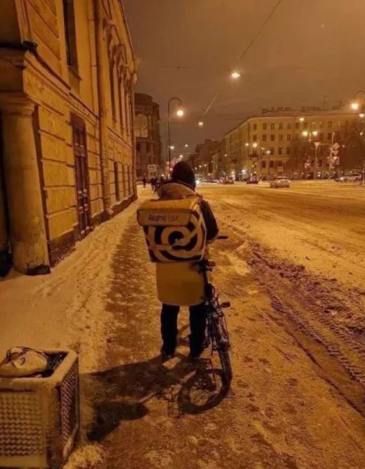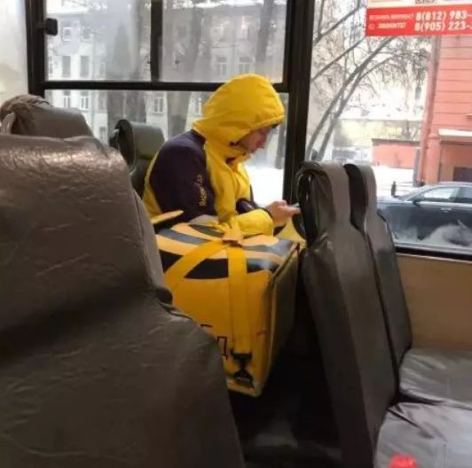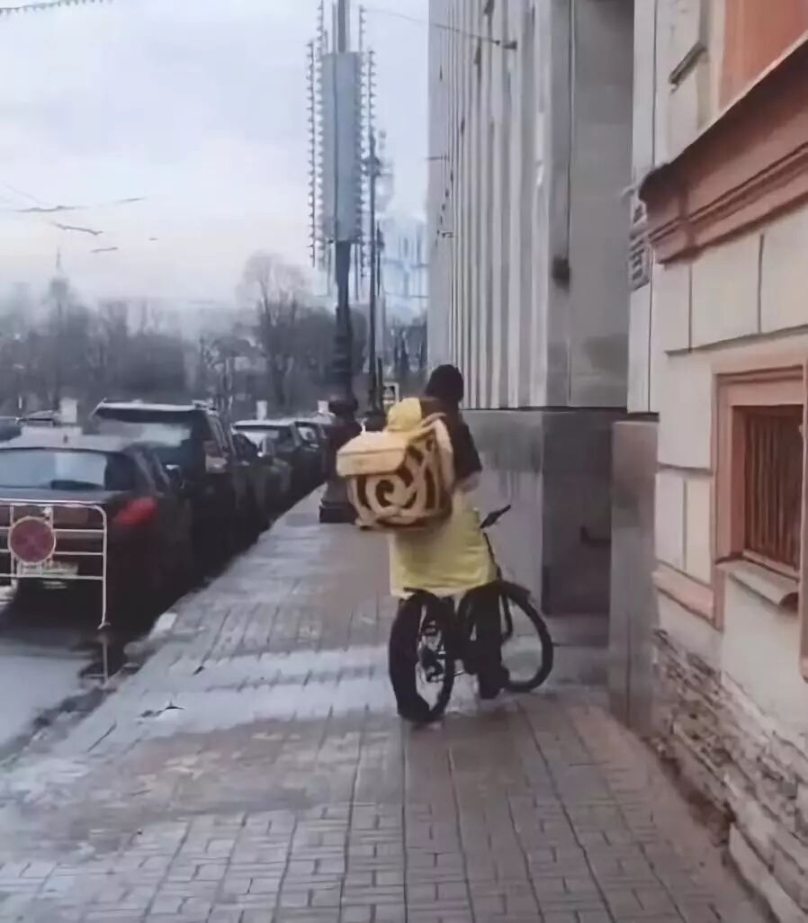 千万不要觉得这种送餐方式是个例...其实走路是俄罗斯送餐小哥最喜欢的方式...