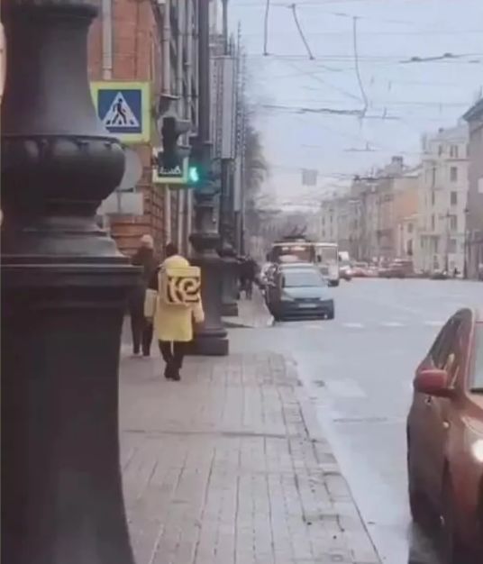和我们熟悉的摩托车送外卖的方式截然不同,俄罗斯外卖小哥特别喜欢悠闲的走在街道上,压着马路,哼着歌,如果不是他们穿着黄色制服,背着大大的送餐包,还以为他们是现代诗人或者艺术家在找寻灵感...