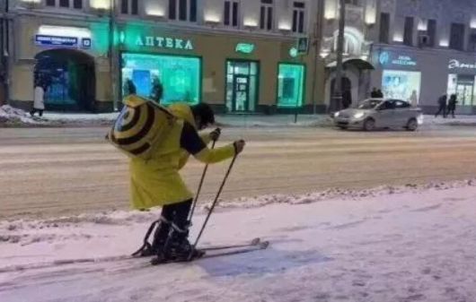 所以俄罗斯的送餐小哥也有其他一些送餐方式。