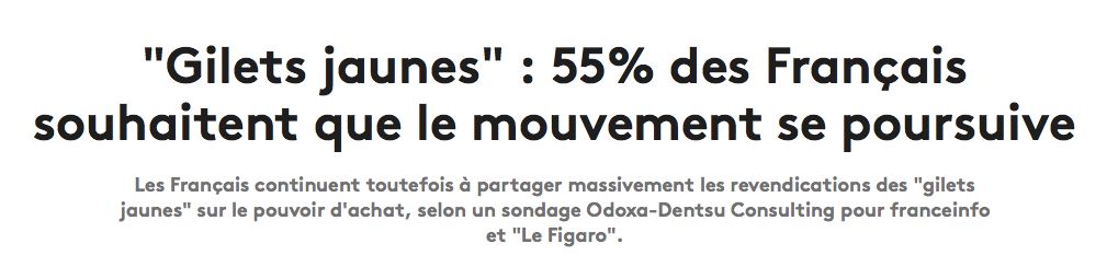 根据本周三发布的一项民调显示,仍有55%的法国人希望黄背心运动继续下去。