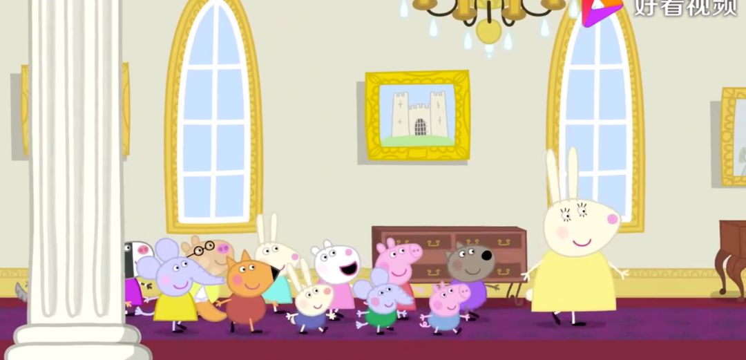 比如某一集,勤劳能干的兔小姐被评为“最最努力的人”,从而有了拜见英国女王的机会。她带上了佩琦等等小伙伴们,参观了女王迷人的后花园,还和女王跳了泥坑……