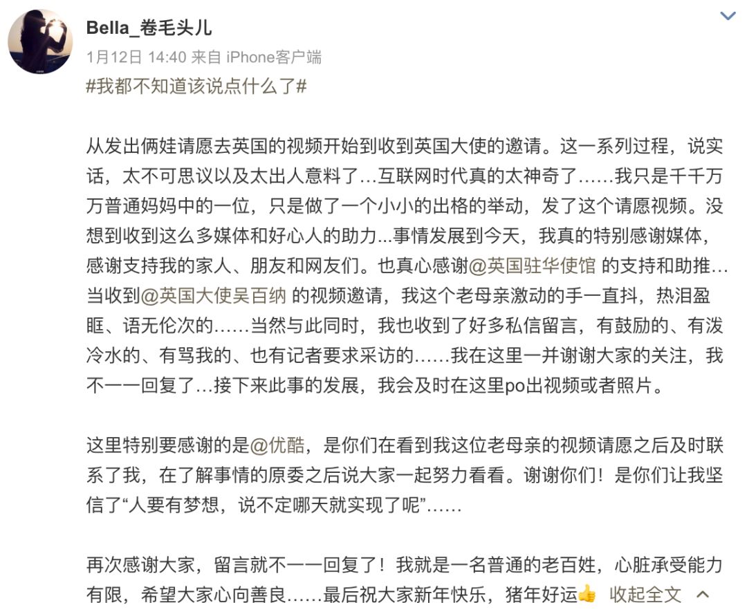 总之,事态这样疯狂地发酵谁都没有想到,此时两个萌娃的妈激动得已经语无伦次,发了条长微博赶忙道谢互联网。