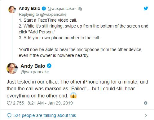 1月29日,9to5mac发布报道称,FaceTime出现重大漏洞。