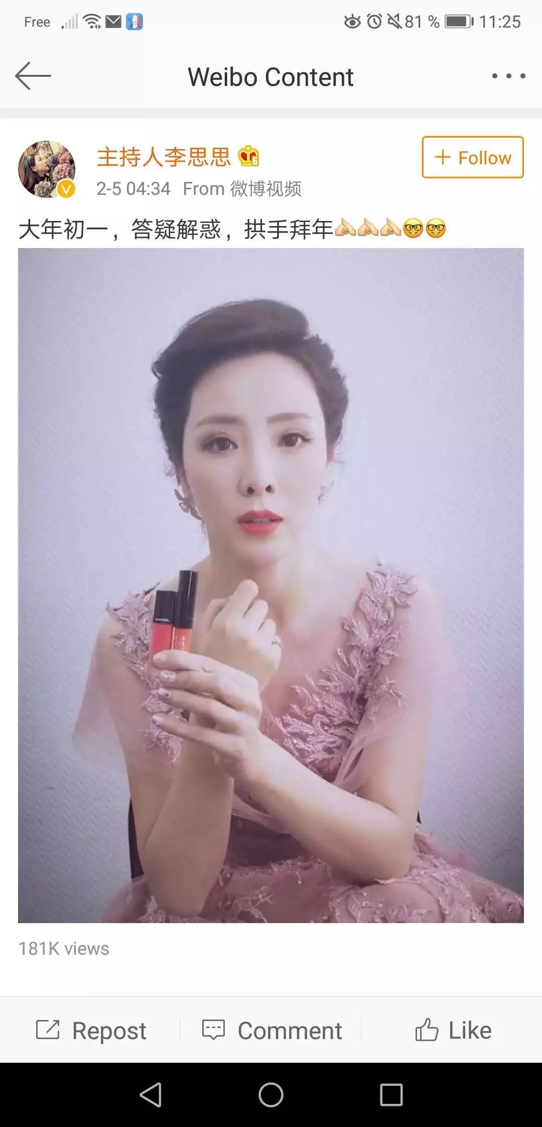 首先不得不提的就是在春晚播出时引爆热搜的“李思思荧光口红”,当时就有网友跑到李思思微博下留言:
