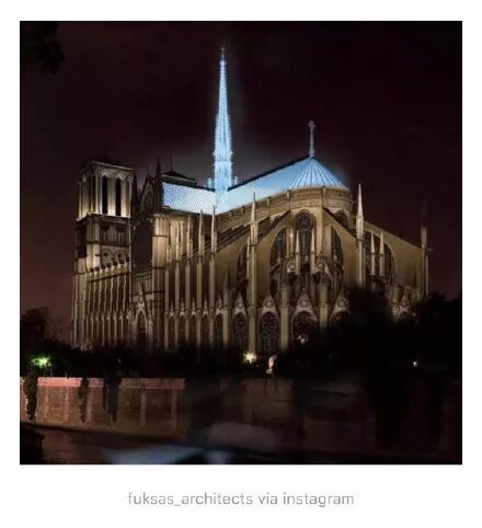 方案二:意大利设计师表示,重建还是要保持原样,但是要把材料换成玻璃材质,再加上夜灯。