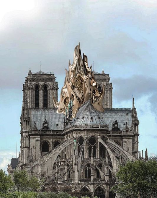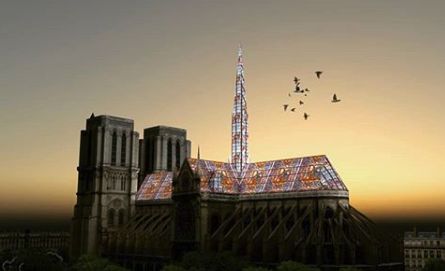 方案七:由法国本土设计师提供,他认为既然无法真正复原圣母院,不如铭记她烈火中的模样。