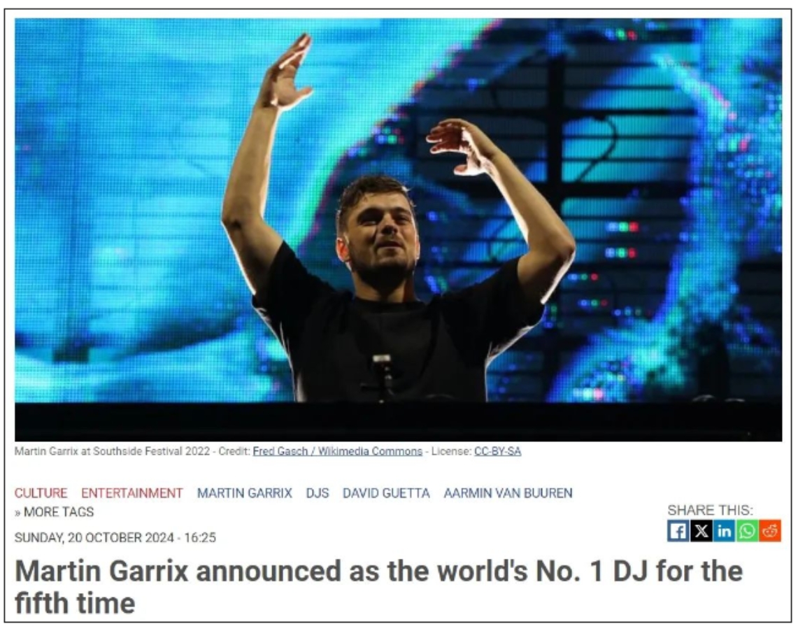 Martin Garrix在回应中表示:“能与我的所有偶像一起上榜,感到非常荣幸。我非常仰慕Armin和Tiësto,能与这些偶像齐名,让我感觉非常梦幻。刚入围并登顶榜首时,我最担心的是从那以后就只会走下坡路,所以能再次登顶对我来说意义非凡。”