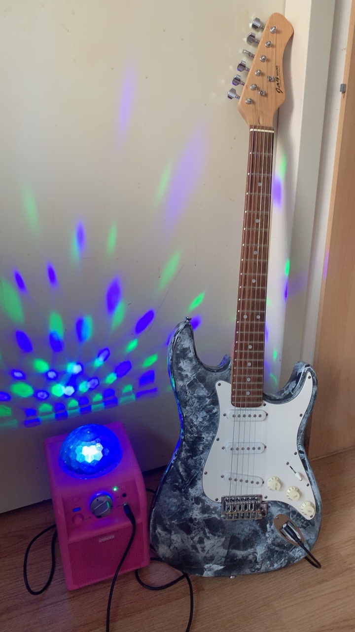电子吉他闲置,什么牌子的不知道, 插上音响能弹出声音,使用正常,琴颈健康。手感做工没得说,选音色中规中矩,不会玩,自己看好再拍,不提供专业支持,售出不退,最细的弦要换一根,我整断了,配件如图,包都在,耿直的音响一起送,